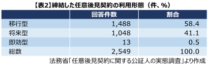 締結した任意後見契約を利用形態別にまとめると、表2のとおりです。